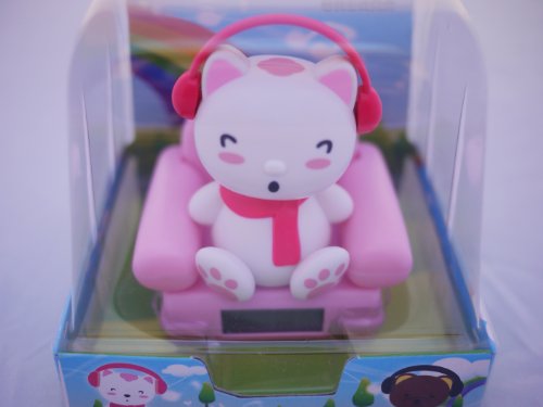 Solar Powered Shaking and Nodding Bobble Head *White Cat* Figures for Desktop or Car Overview
