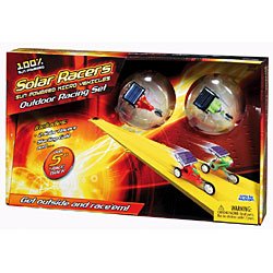 Zippy Solar Racers. Our each is a pair of extremely cool, and quite quick, solar-powered race cars. They measure 2-1/2" long with 1-1/8" x 3/4" adjustable-to-the-sun-angle solar panels on top. There's a 5-foot long track and a starting gate included, but we just wait for a sunny day, put them down on the parking lot and take them for a long walk. Slick.Details
